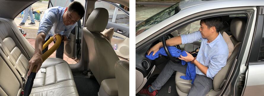 汽车支部党员教师在洗车服务过程中身先士卒,亲自为学生演示规范的洗车流程,培养了汽车部学生的专业技能实践水平。