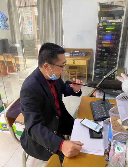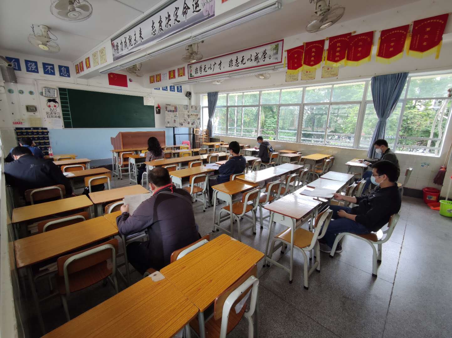 为减少新冠疫情防控期间的人员聚集,会议采用广播传达的形式进行,香洲校区79位参会人员分散在8间教室就座,每间教室不超10人。斗门校区71位参会人员在操场召开会议。保证人与人之间距离相隔1米以上。要求参会人员回校时做好个人防护,进入校门时,有学校安保工作人员测量体温,做好登记,最大限度保障了参会人员的健康与安全。
