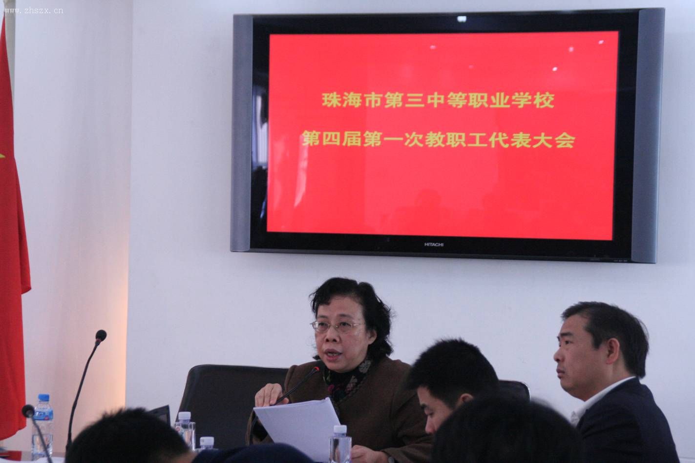 大会认真听取了詹红红校长作的《办品牌专业,重文化建设,办特色学校》述职报告。詹校长向全体与会代表阐述了2008年学校在德育、教学、专业建设、管理等方面的主要工作、目前存在问题及今后努力方向。