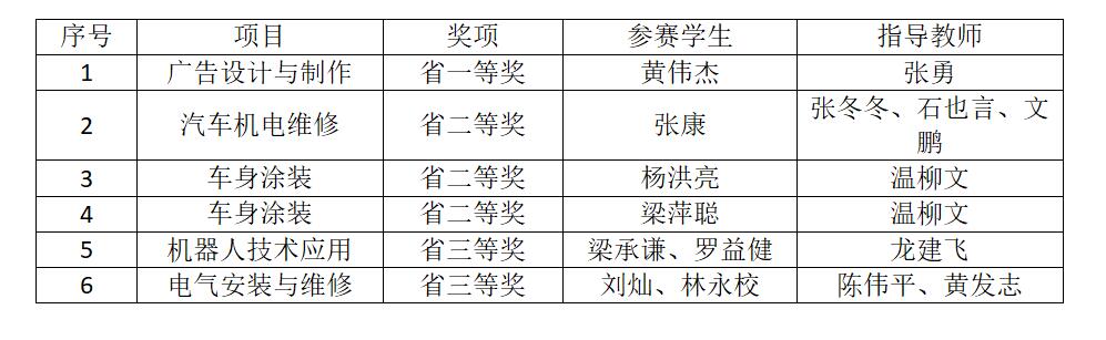 ——我校学生参加广东省中职院校技能大赛捷报频传