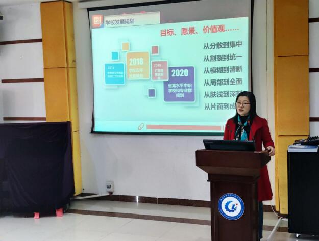 下午,首先由方芳副校长为学校干部解读我校“双高”建设规划与任务。“双高”建设规划是指建设广东省高水平中职学校和专业群规划。方芳副校长从学校发展规划的指导思想、建设目标、建设思路讲起,指出学校应走内涵发展、特色强校之路,进行专业布局调整,建设“两高三特”专业群。