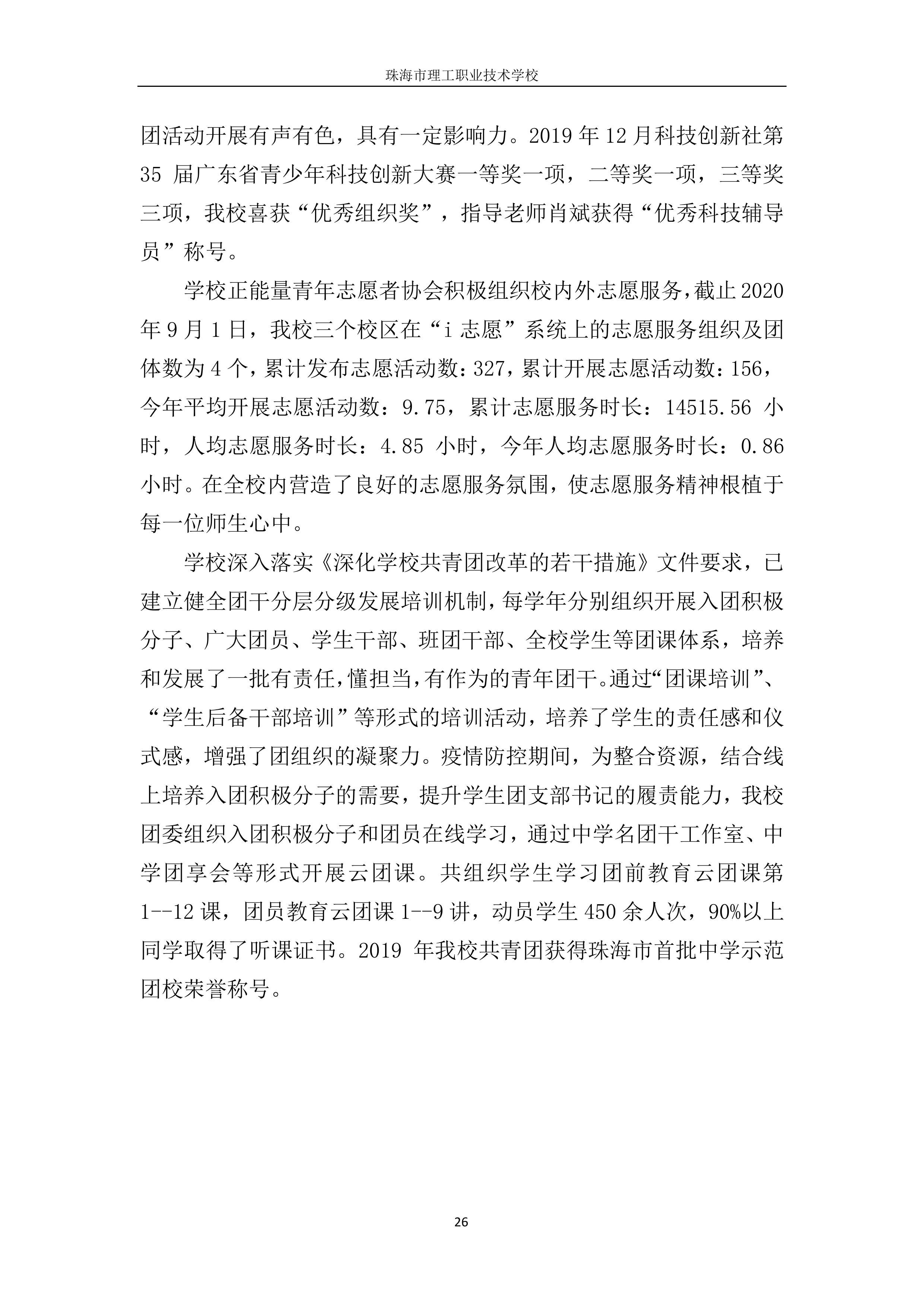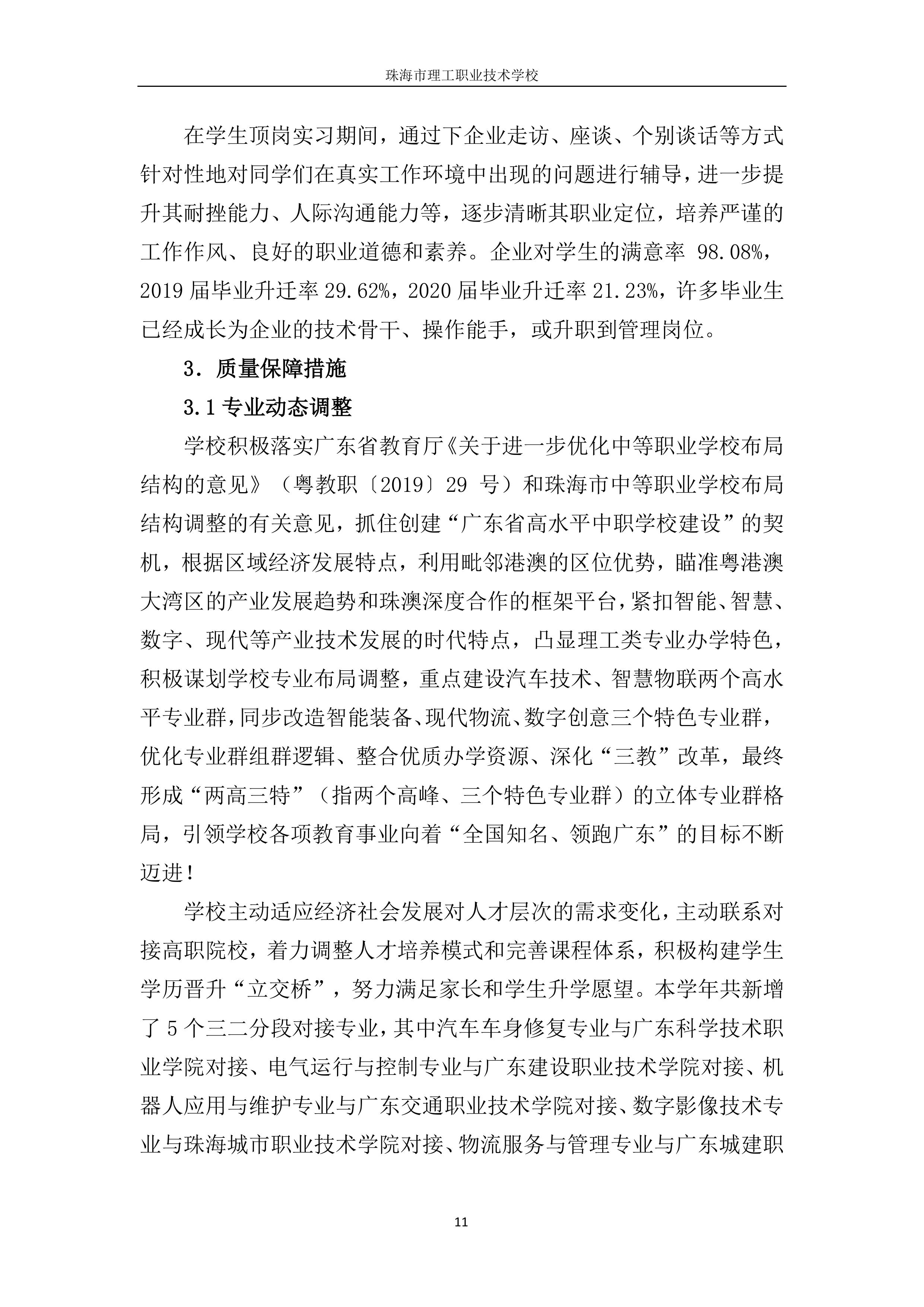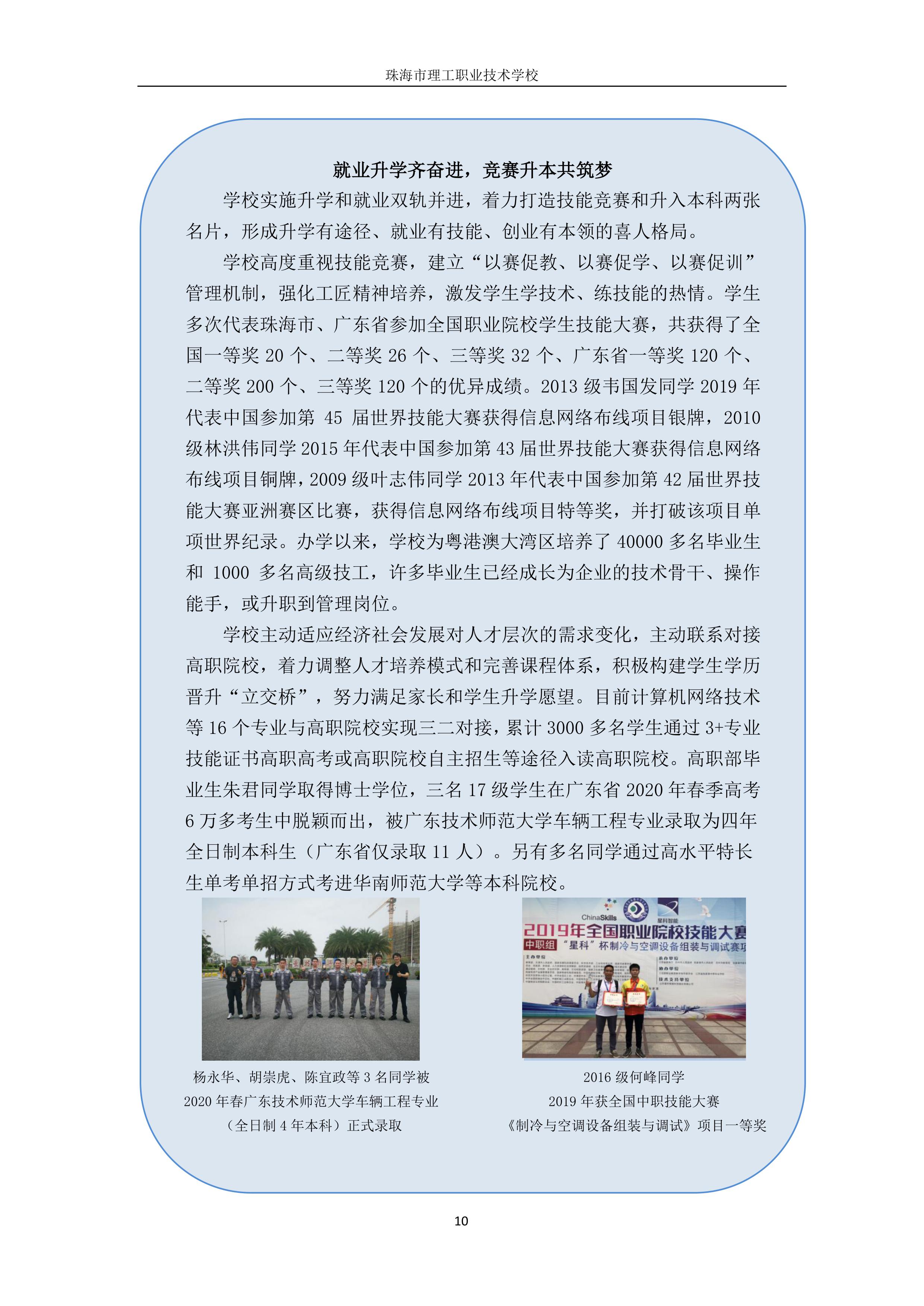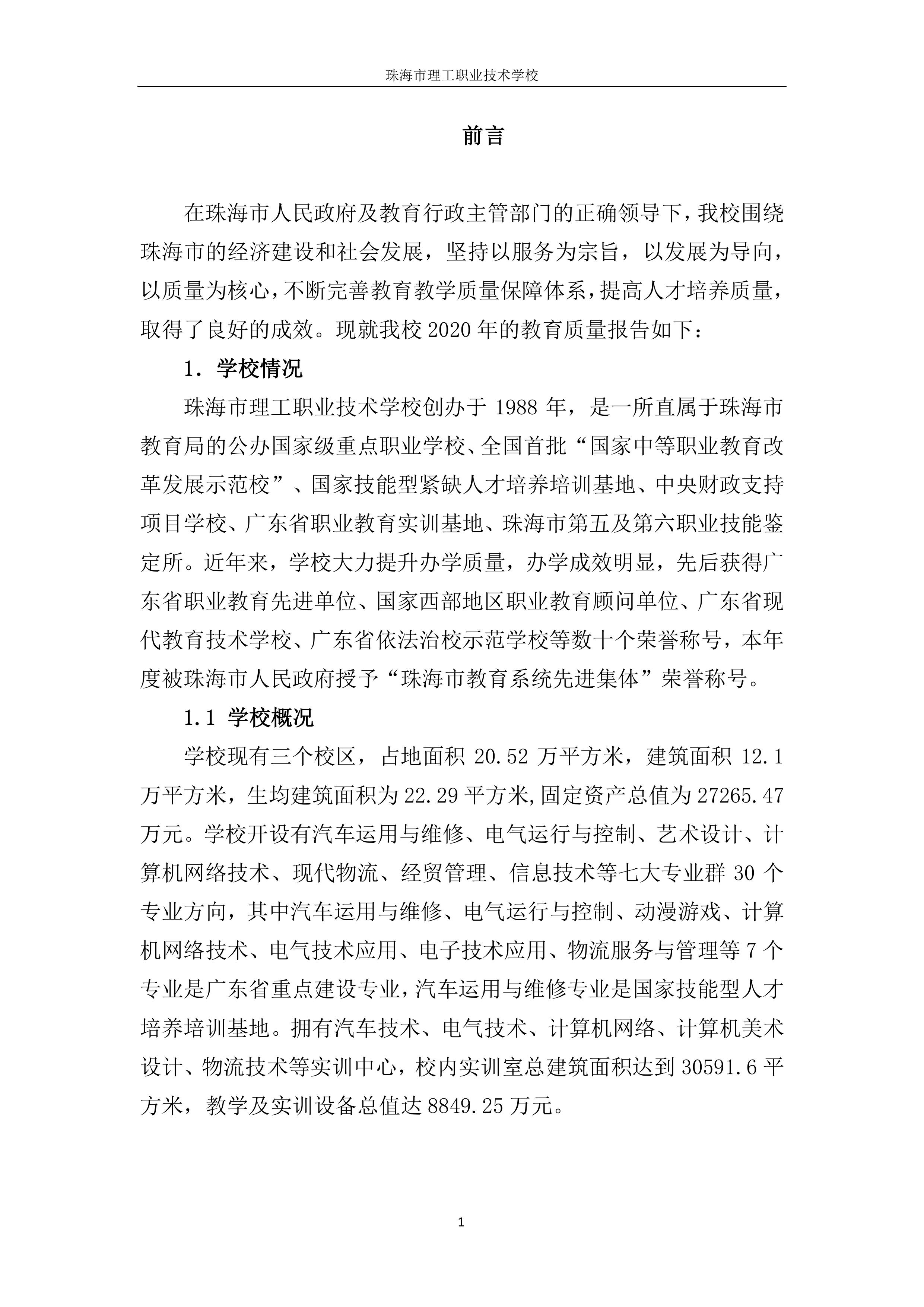 珠海市理工职业技术学校年度质量报告2020