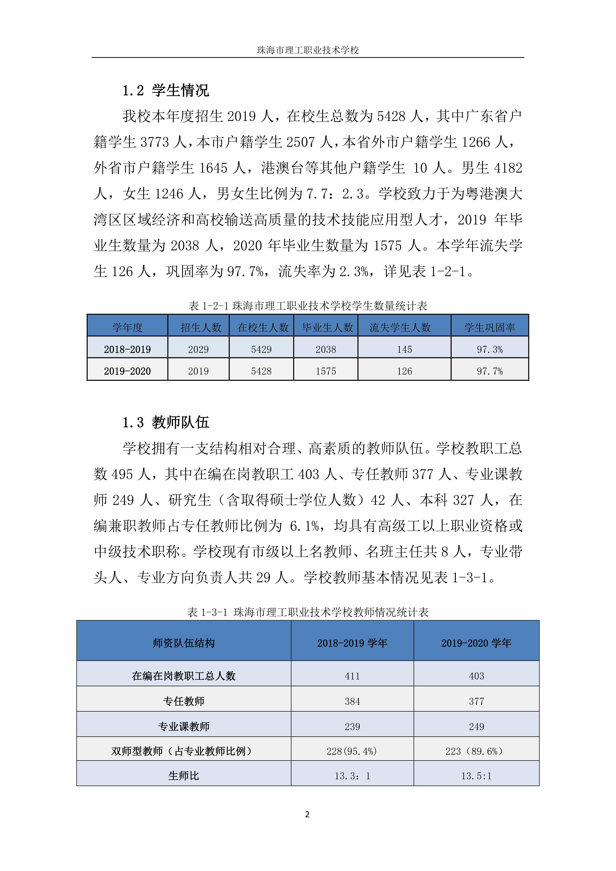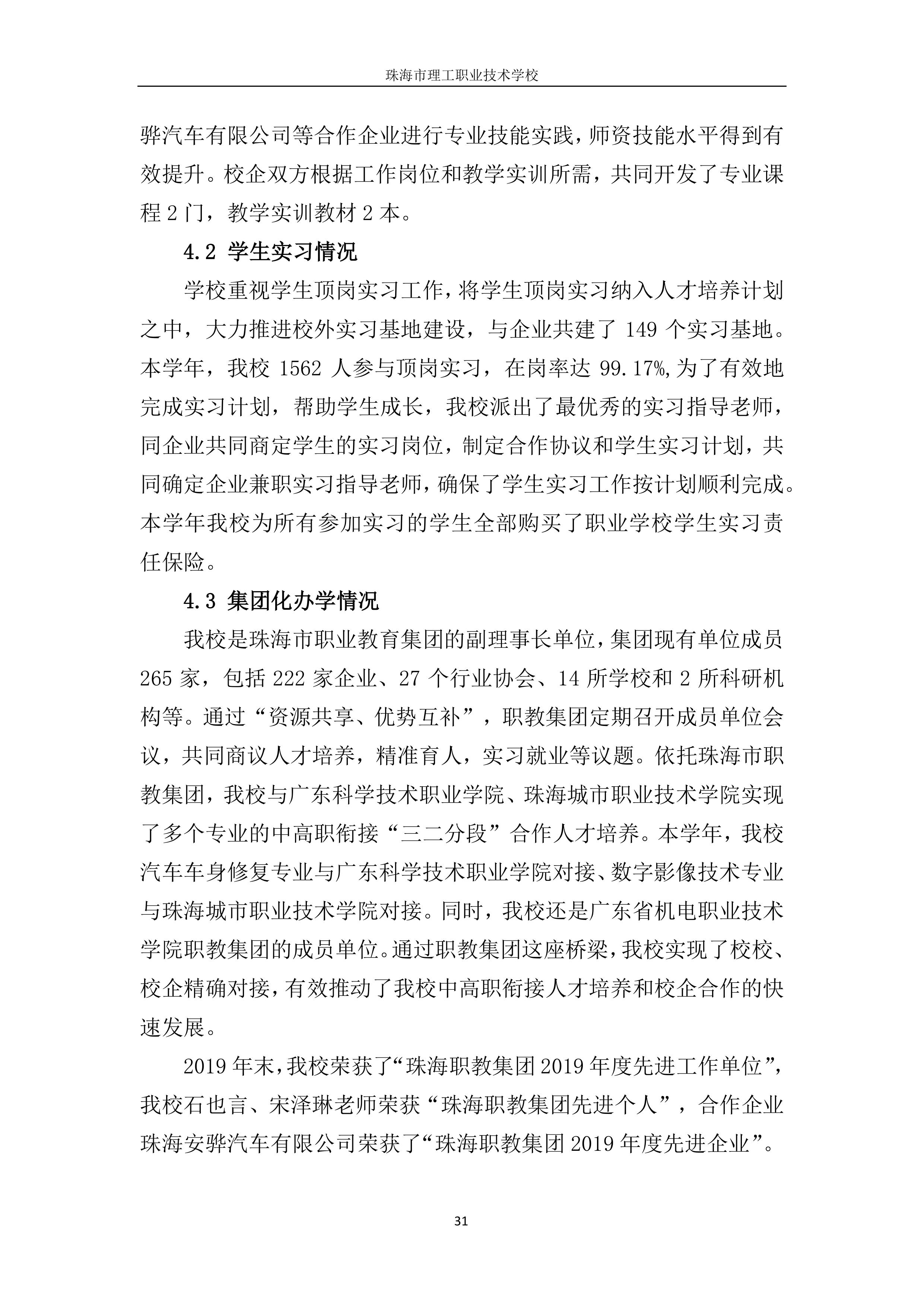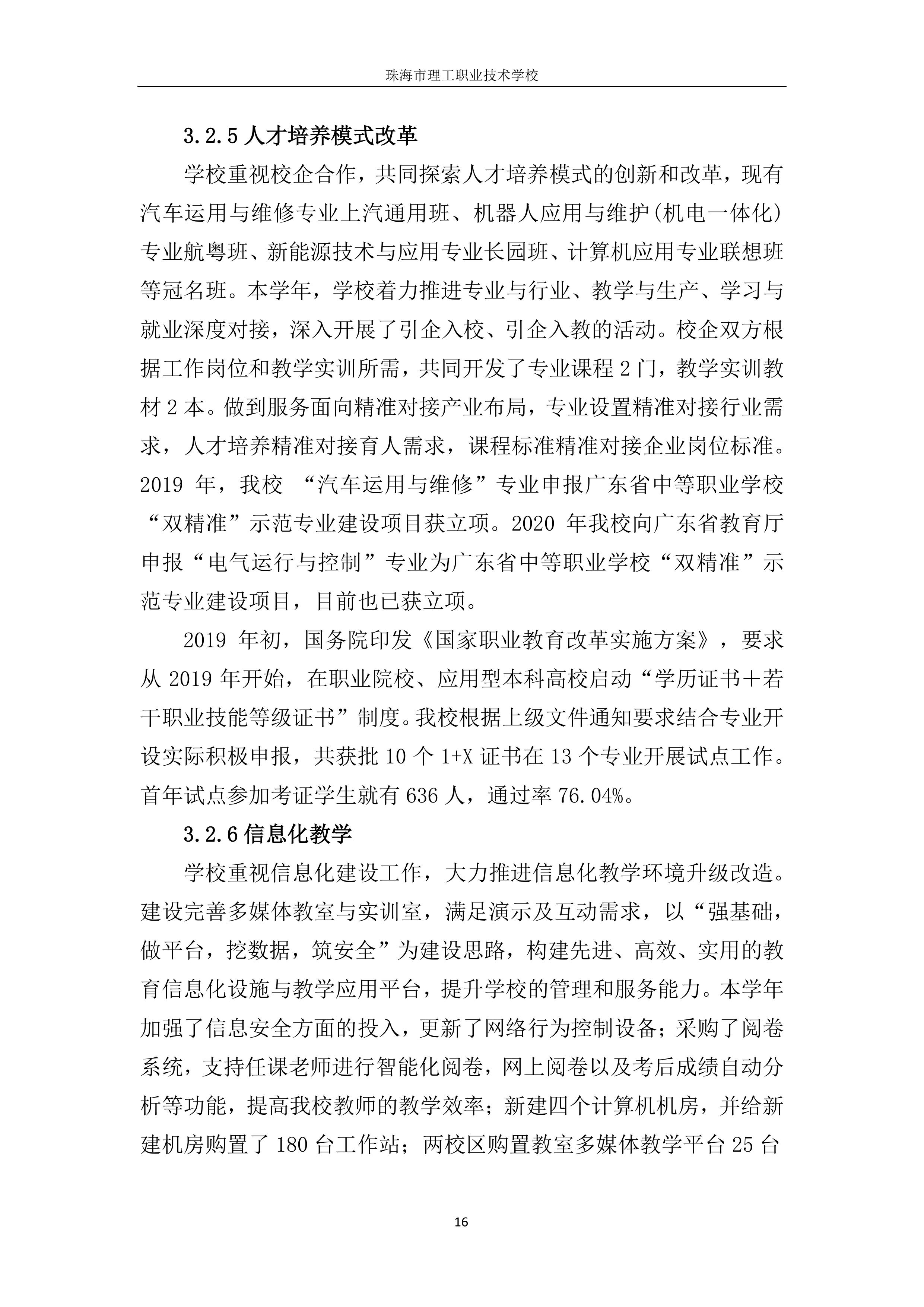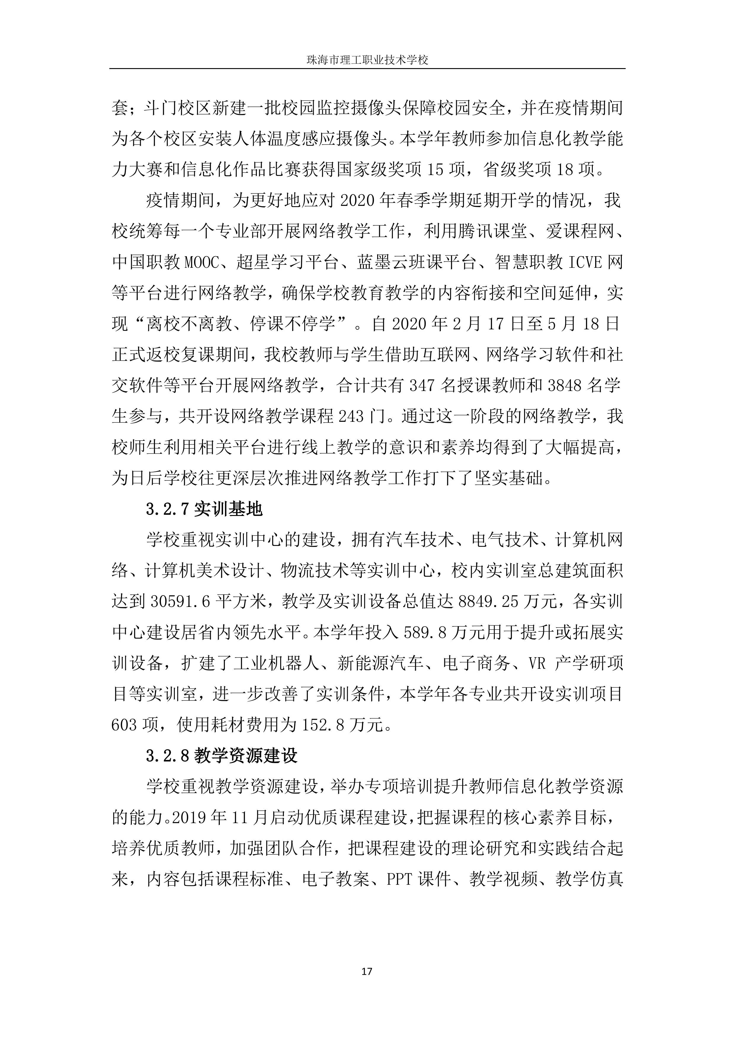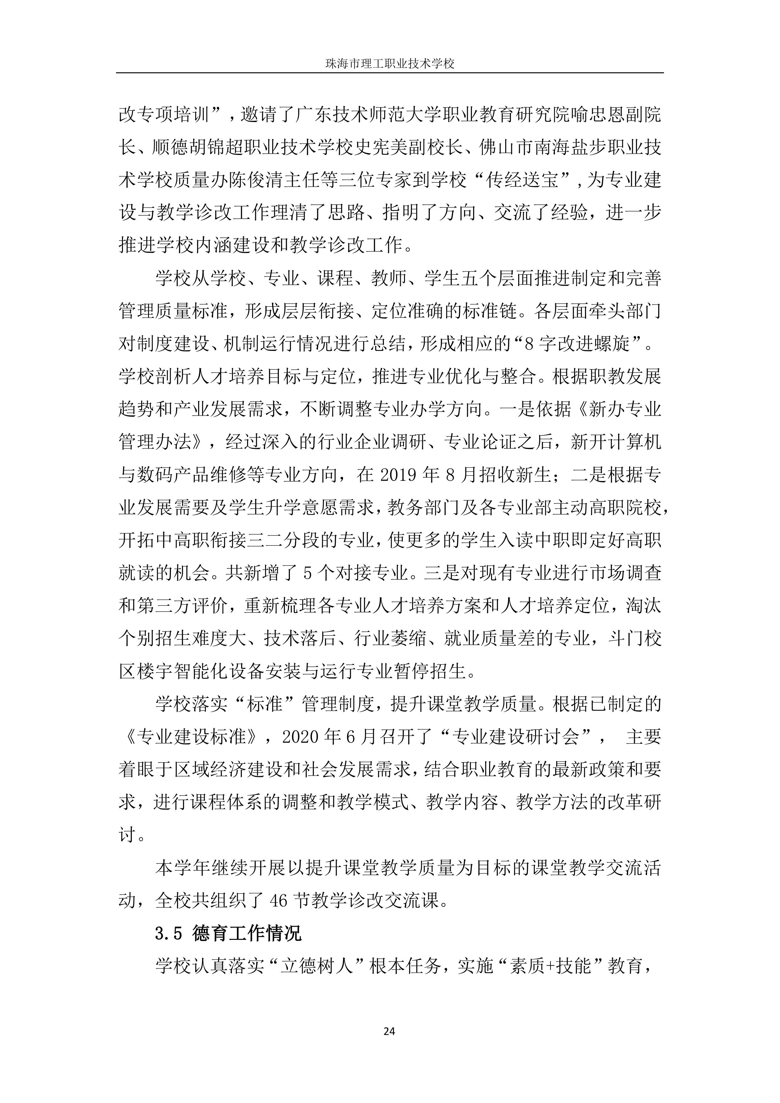 珠海市理工职业技术学校年度质量报告2020