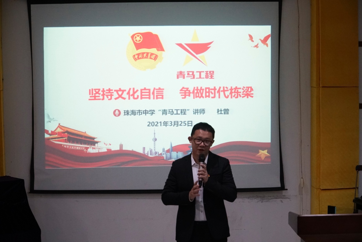 3月25日,2021年珠海市理工职业技术学校“青年马克思主义者培养工程”培训班开班仪式在校本部三楼阶梯教室举行。在开班仪式的议程中,张伟铭校长为我校“青马工程”的学员讲了主题为“学党史、悟思想、做新人”的思政第一课。