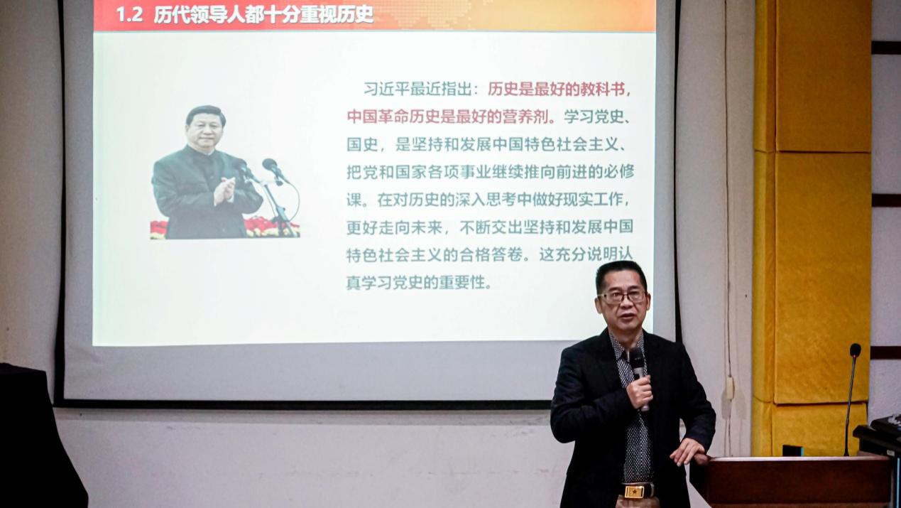 在为同学们上思政课中,张伟铭校长与同学们一起回顾了党历史上的重大事件。从党领导人民开展社会主义建设,到改革开放,中国一步步走向富强,充分体现了共产党人“立党为公、真诚为民”的初心,更展现了“铁肩担道义”的时代担当。