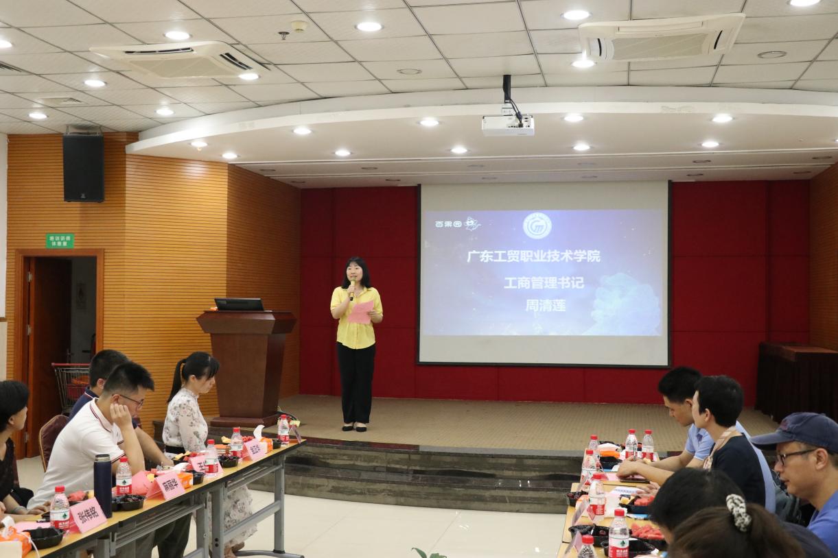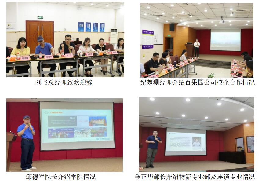百果园粤西区域刘飞总经理对我校和广东工贸职业技术学院各位领导老师的到来表示热烈欢迎。会议由人力资源部张佳辉主管主持,百果园广州区人力资源部人事副经理纪楚珊女士向与会嘉宾介绍了百果园的基本情况和目前校企合作的开展情况,广东工贸工商管理学院邹德军院长对学院情况进行了介绍,金正华部长就我校物流专业部和连锁经营与管理专业的情况进行了介绍。