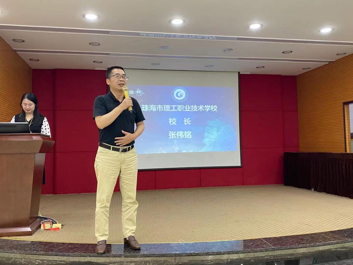 广东工贸职业技术学院工商管理学院党总支周清莲书记代表学院致辞,她说广东工贸职业学院与珠海市理工职业技术学校在同一年与百果园公司相识,经过多年的合作,彼此增强和互信加深了理解,形成了良好的合作基础,希望在全新的合作项目中,能结出新的硕果,成为校企深度合作的典范。张伟铭校长在致辞中指出,珠海市理工职业技术学校在工匠精神引领下,坚持“传承、发展、创新、服务的办学理念,以习近平中国特色社会主义思想为指导,与时俱进,不断开拓,为粤港澳大湾区经济建设做出贡献,希望基于三方良好的合作基础,以“三融通三精准”中高衔接中国特色新型学徒制项目为契机,不断深化产教融合、校企合作,推进“三教”改革,提升教育质量,共育各层次高素质技术技能人才。