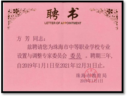 个人成长 | 2008.8-2015.2任教务处副主任;2015.2-2017.8任教研室副主任;2017.8-2020.8任教研室主任;2020.8至今任学校副校长;十余年分管学校教育科研工作,主持学校历次课程改革。2016年获珠海市名教师荣誉称号;是珠海市教育科研专家组成员,珠海市职业教育课程改革专家。 |