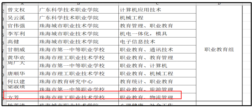 个人成长 | 作为省物流专业带头人,参与了2012年广东省中职重点建设专业评估、成为珠海市城市职业技术学院和顺德陈村职业技术学校物流专业建设委员会指导专家、第三批国家示范校东莞市经济贸易学校重点建设专业物流服务与管理专业建设指导专家、连续3年被聘为广东省中职物流专业教师技能大赛评委。 |