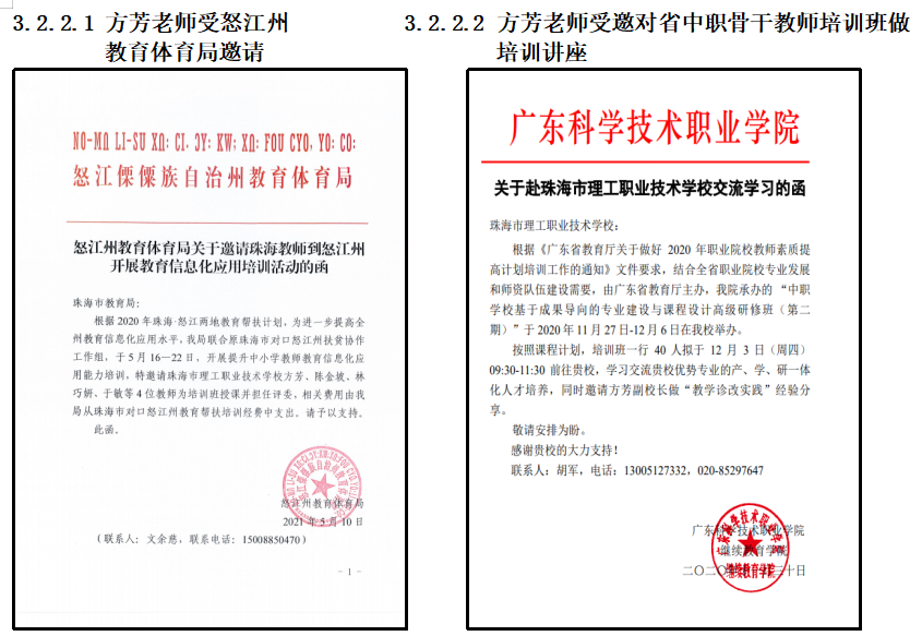 2 | 2020年12月,方芳老师受广东科学干部学院邀请,对省中职骨干教师培训班做培训讲座,主题为《珠海理工教学诊改实践与思考》。 |