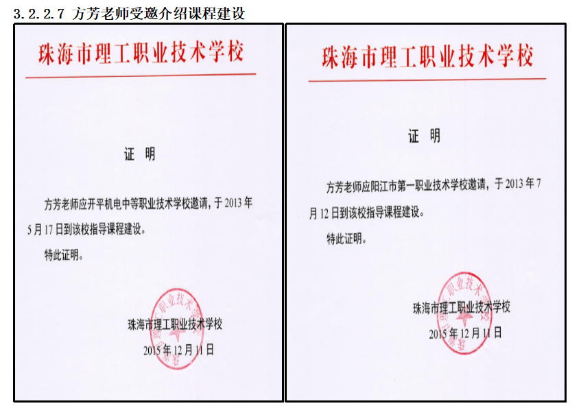7 | 2013年5月,方芳老师受开平机电中等职业技术学校邀请,到该校指导课程建设。 |