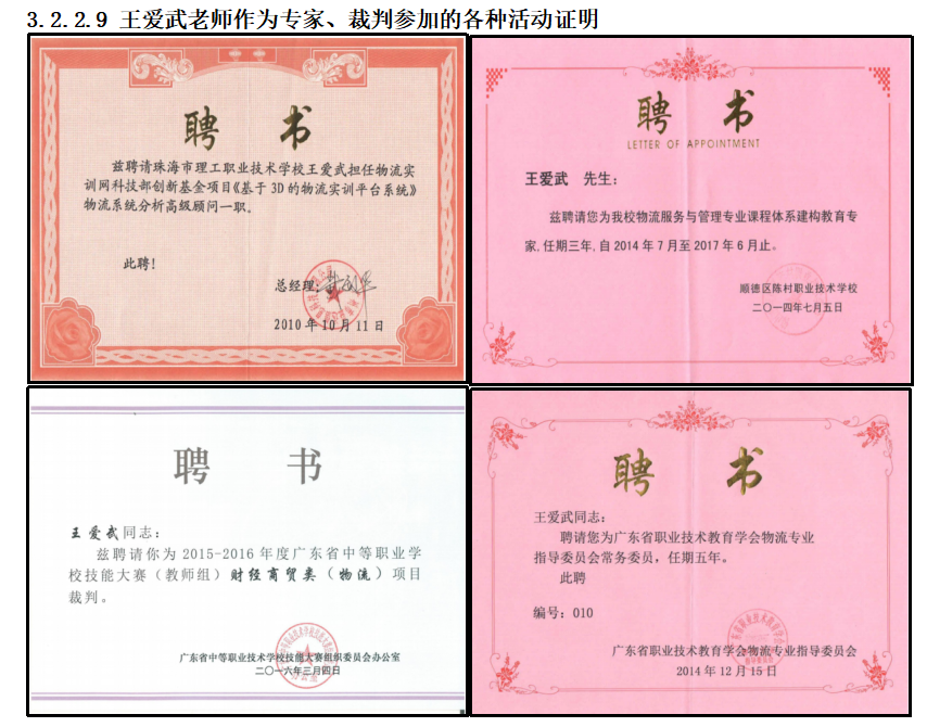 6 | 2014年7月,王爱武老师为顺德区职业技术学校物流服务与管理专业课程体系建构和教育专家,聘期自2014年7月至2017年6月。 |