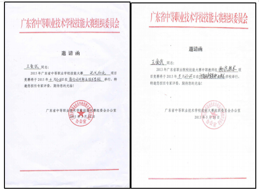 1 | 2016您3月,王爱武老师被聘为2015-2016年度广东省职业学校技能大赛(教师组)财经商贸类(物流)项目裁判。 |