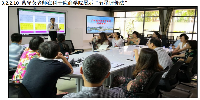 2 | 2018年6月,蔡守英老师参加2018年“中等职业学校优秀青年教师跟岗访学——物流管理”培训项目时向科干院商学院有关专家、教授分享“五星评价法”,得到了一致认可与高度评价,并探讨“五星评价法”在大专院校课程中实施的可行性。 |