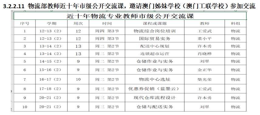1 | 近十年物流专业部教师市级示范交流课10次。 |