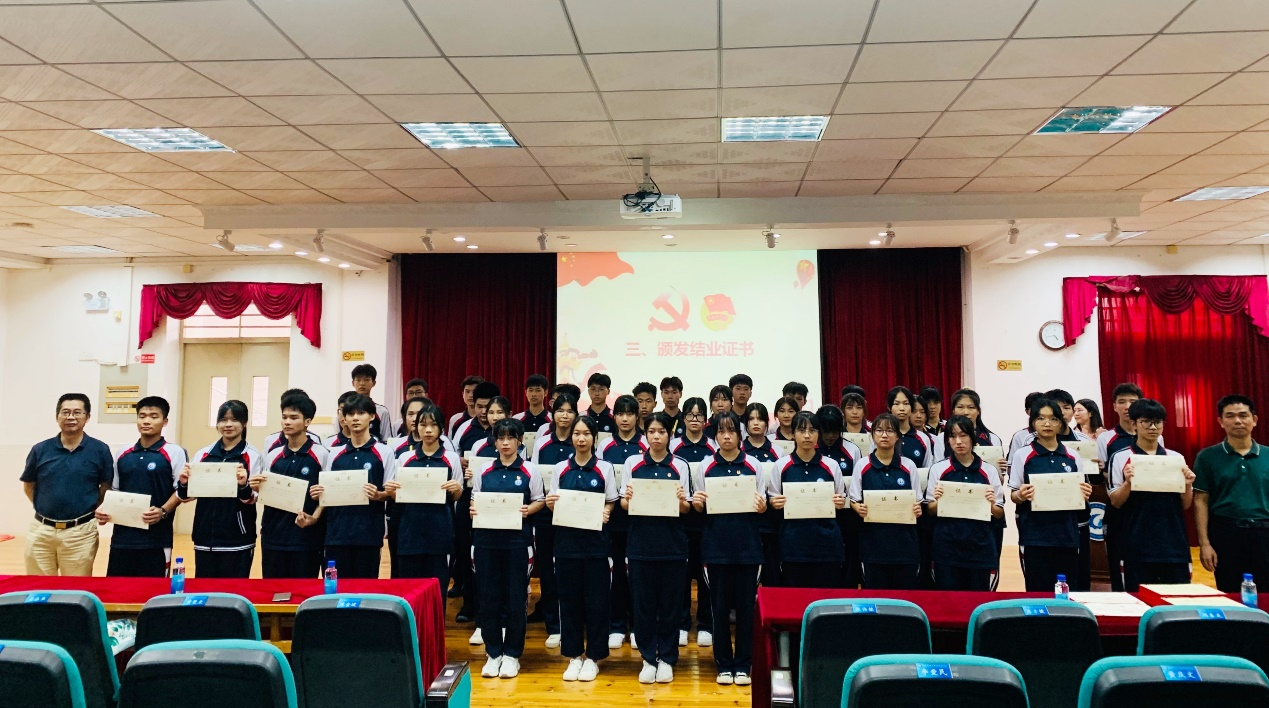 邝嘉敏副书记宣读49名考核合格的学员和17名优秀学员名单。张伟铭校长、刘春龙副校长给同学们颁发了结业证书和优秀学员荣誉证书。