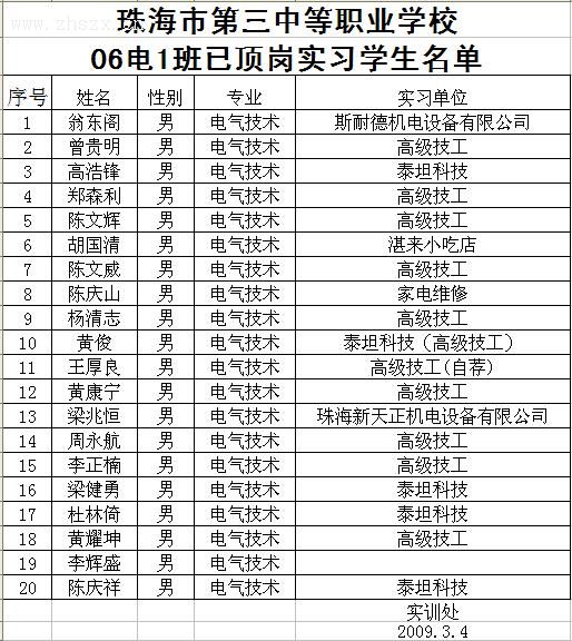 下一篇:06电子班已顶岗实习学生情况表[ 03-04 ]