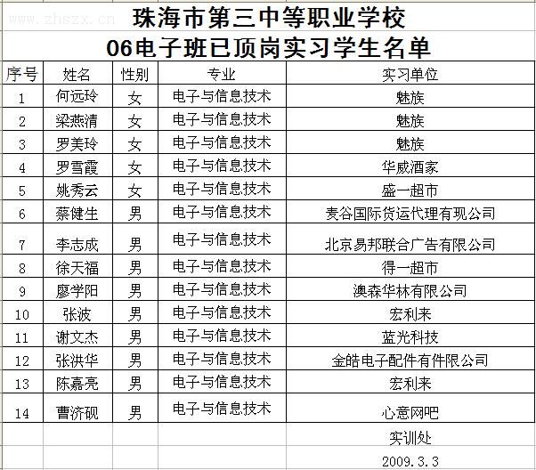 下一篇:06汽1班已顶岗实习学生情况表[ 03-04 ]