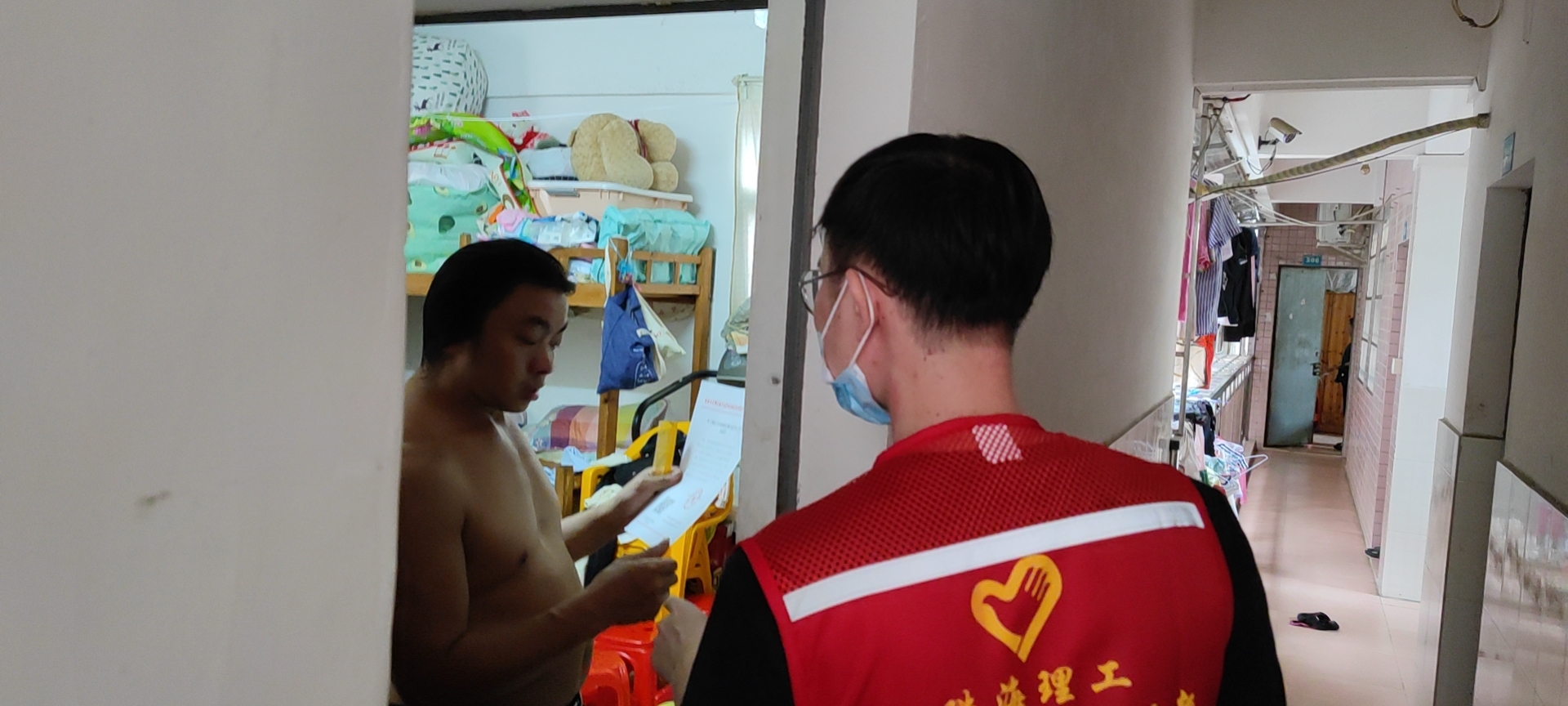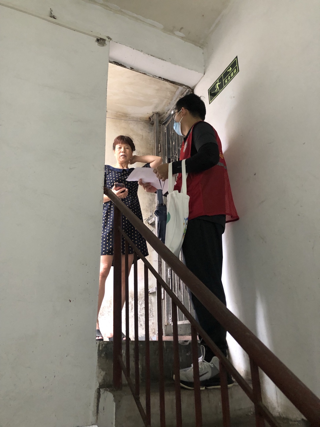 社区组织了居住在附近的学生志愿者,协助我校教职工志愿者工作。教职工志愿者与学生志愿者组成三人一个小组,携市防疫办发布的《关于做好全员核酸检测信息采集工作的通告》纸质材料,对照居民信息表,挨家挨户对小区居民进行信息采集,居民通过扫描通告上前山街道莲塘社区全员核酸检测人口信息采集二维码填写相关信息。对于不在家的住户,志愿者们将纸质通告放在门口,以供住户回家后阅读通知、扫码填写信息,确保“不漏一户、不落一人”!