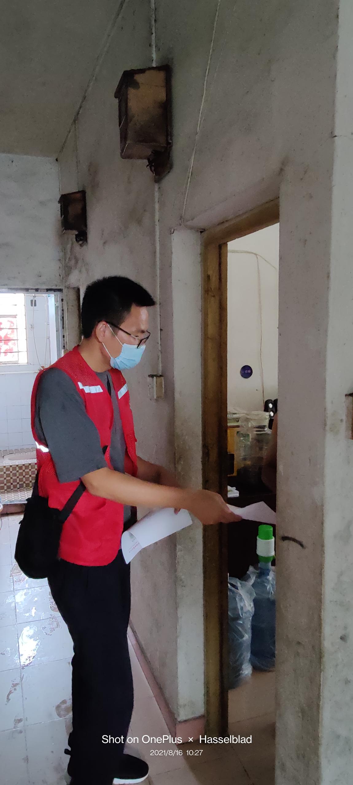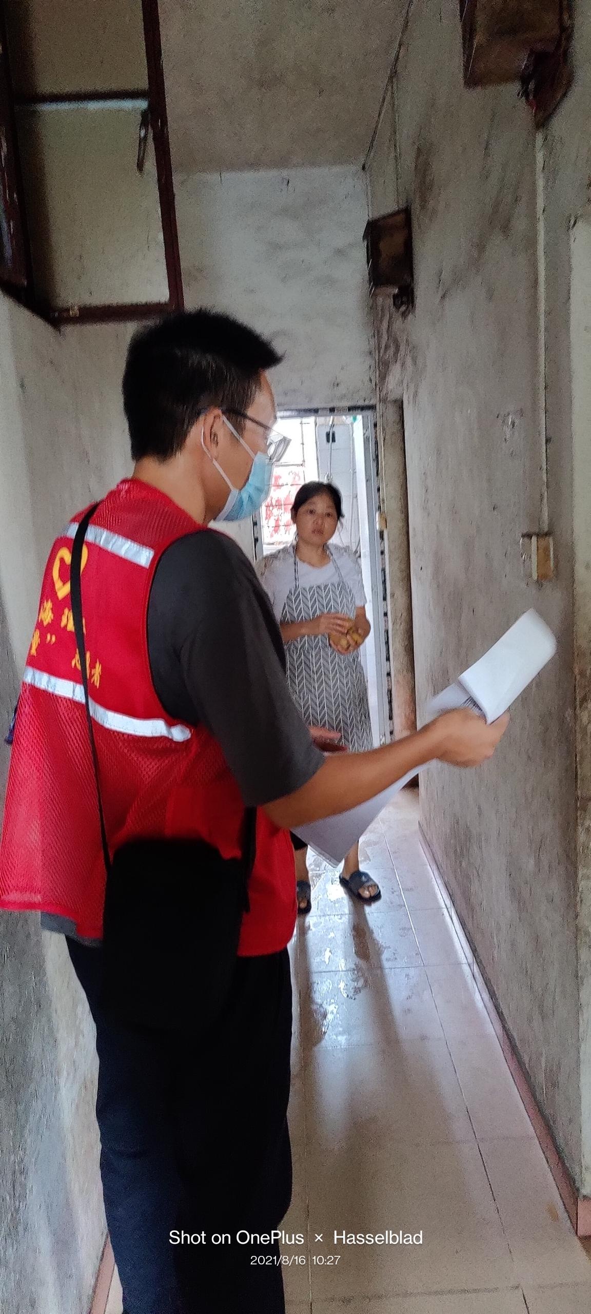 8月15日支援工作结束后,莲塘社区许书记表示:“莲塘社区管辖范围大、类型复杂、流动人口多,希望学校能再抽调部分教师,继续支援社区摸清莲塘村核酸采集人口底数。”,经校领导研究决定由我校84名教职工志愿者队伍中的46名男性员工继续进行支援工作。8月16日上午,这46名志愿者们不畏天气恶劣、环境复杂,冒着黄色暴雨走进莲塘村,完成了对该村2000余户居民的核酸采集人口底数摸排任务。