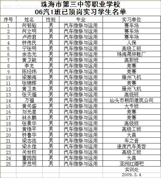下一篇:06汽2班已顶岗实习学生情况表[ 03-04 ]