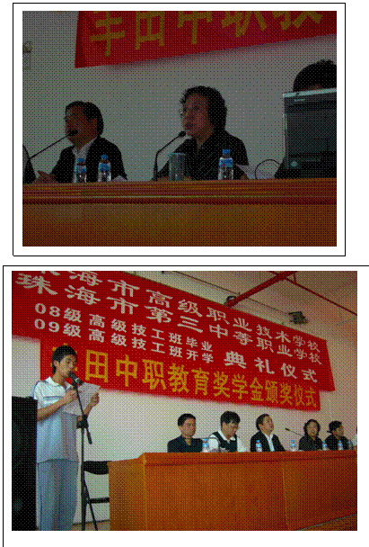 我校举行08级高级技工班结业暨09级高级技工班开学典礼和丰田奖学金颁发仪式