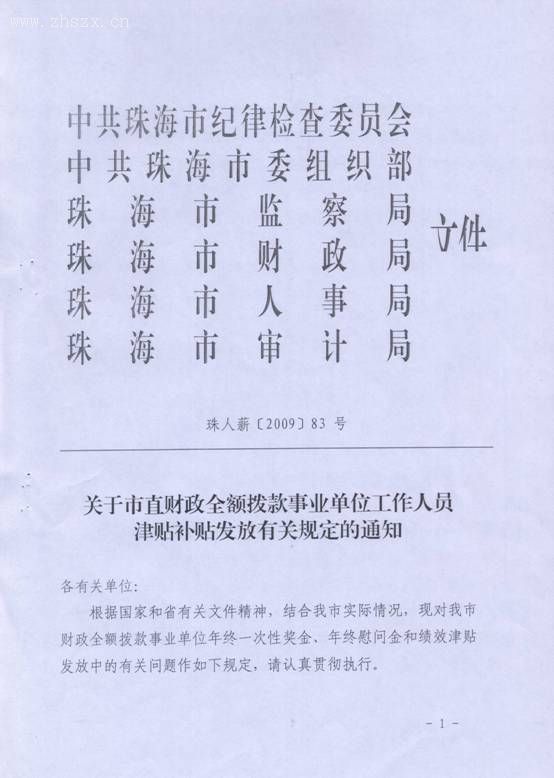 转发关于市直财政全额拨款事业单位工作人员津贴补贴发放有关规定的通知