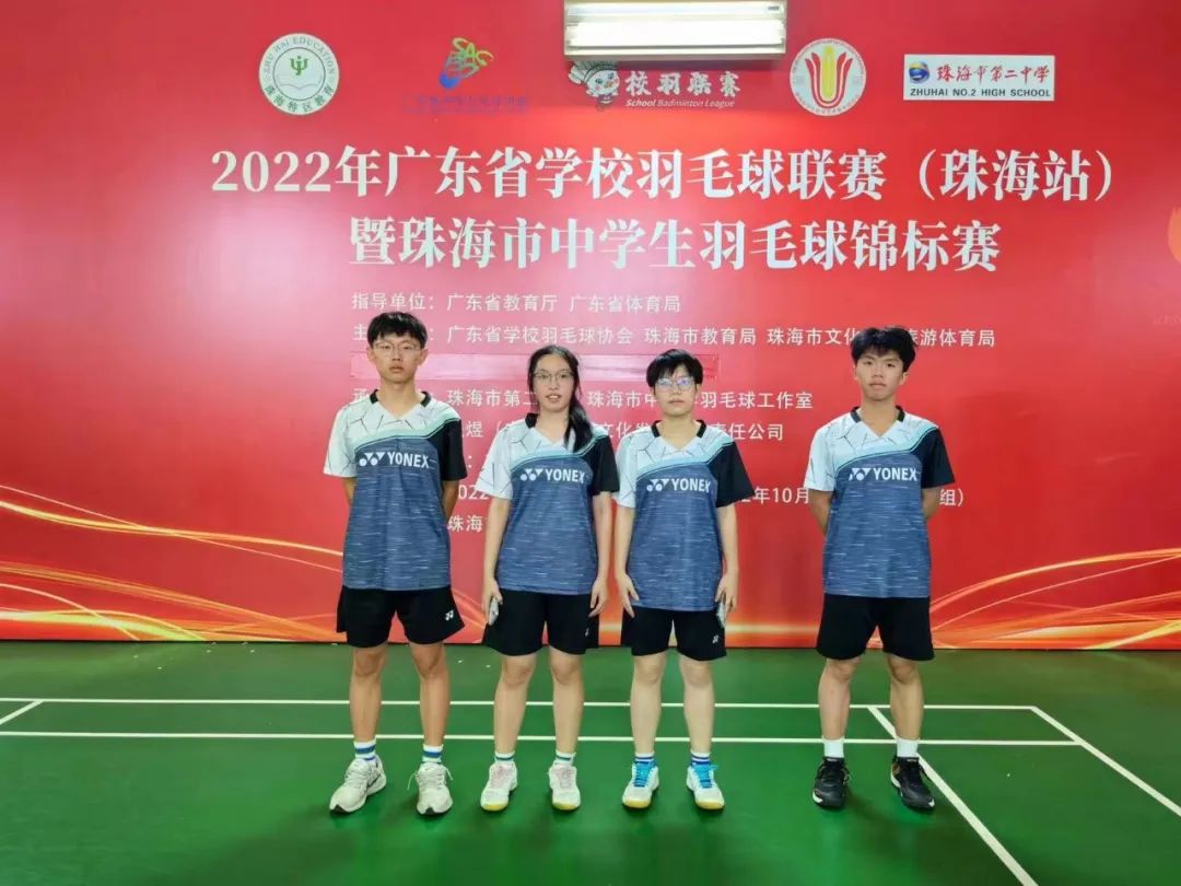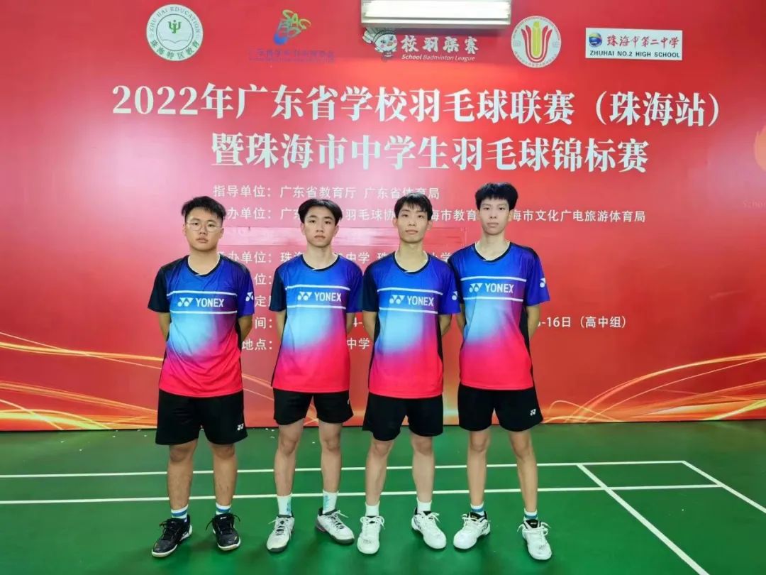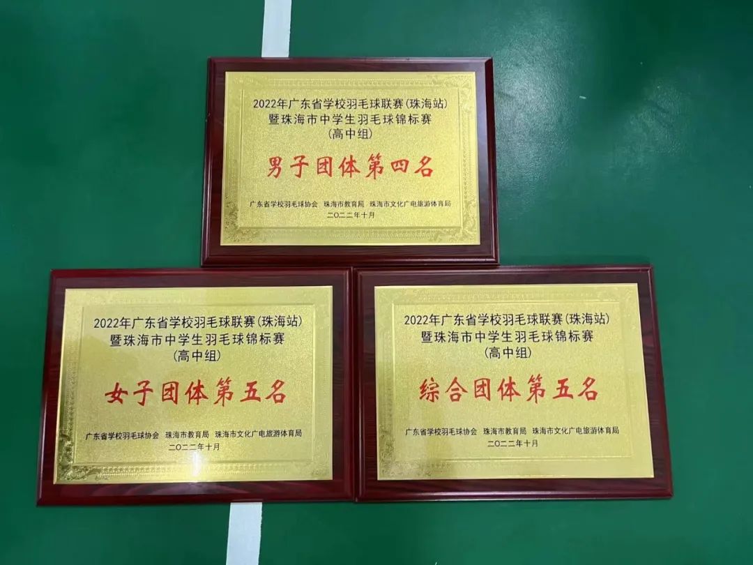 2022年广东省羽毛球联赛(珠海站)暨珠海市中学生羽毛球锦标赛于10月30日下午在珠海市第二中学落幕。经过激烈的角逐,我校学生羽毛球队斩获佳绩获得:男子单打亚军,女子单打第四名,男子双打第八名,男子团体总分第四名,女子团体总分第五名的优异成绩,创造了我校学生参与该赛项的最好成绩!
