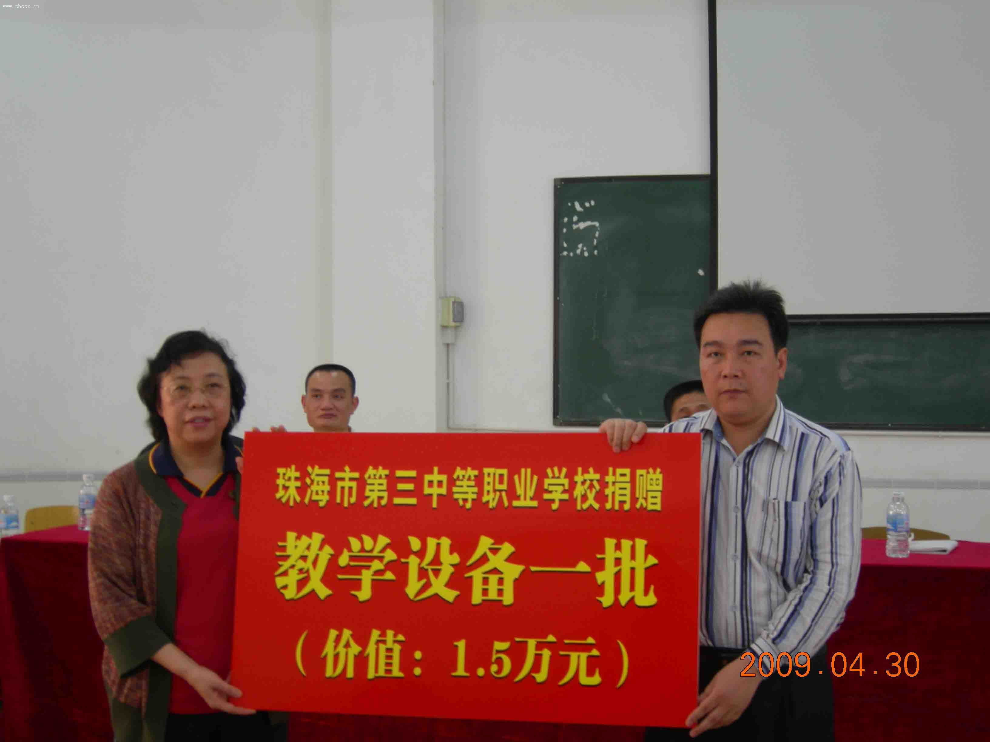 交流会议中,德庆县职教中心校领导首先介绍了学校近年来的发展情况,并对珠海三职校多年来的大力支持表示衷心的感谢。詹校长代表学校讲话,她为该校师生介绍了珠海三职校近期的发展情况以及在2009年广东省技能大赛上取得的优异成绩,并鼓励该校学生好好学习,欢迎大家报读两校联合办学的专业。接着两校学生处主任分别介绍了德育工作的经验,两校班主任也进行了交流。最后还举行了捐赠仪式,珠海三职校向德庆县职教中心捐赠了价值1.5万元的制冷实训设备。