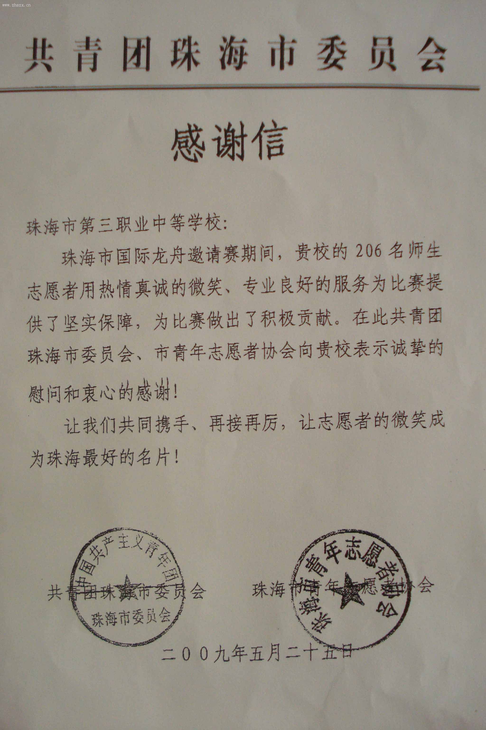 我校志愿者在珠海国际龙舟赛的出色服务受组委会和团市委的表扬