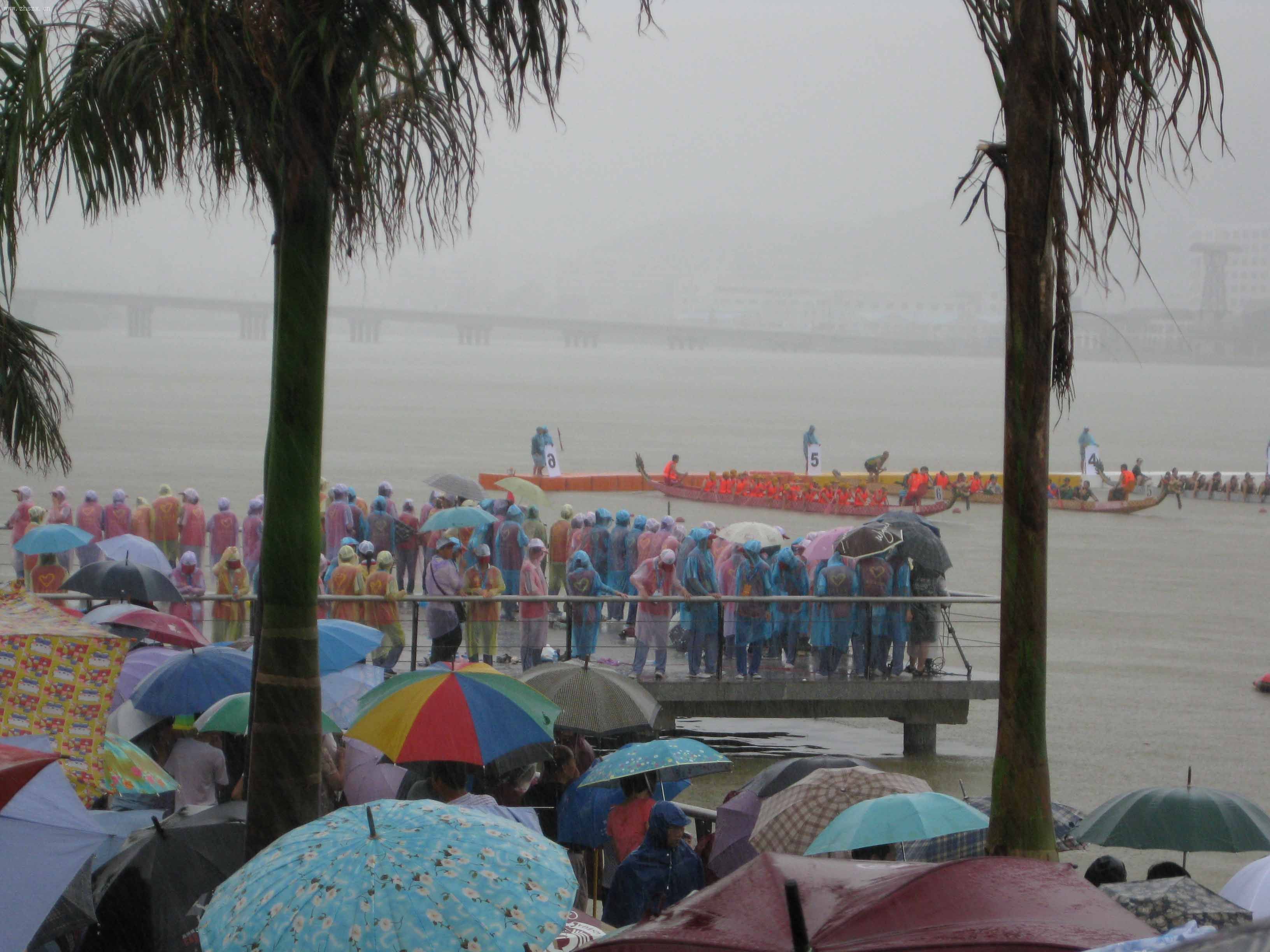 比赛当天,现场气氛非常热烈。各支代表队精神振奋,摩拳擦掌,龙舟在水中劈荆斩浪。岸上观众掌声雷动,呐喊声一浪高过一浪。在人群中,有一支身穿红色志愿者服装的队伍,在风雨中,显得更加鲜艳,他们就是来自我校担负志愿服务工作的206名师生。