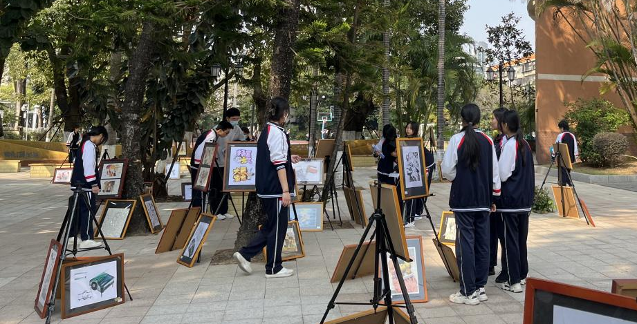 为激励学生专业课学习兴趣,展现学生的学习、绘画、设计水平,丰富学生的课余文化活动,珠海理工艺术设计部策划了专业部21级和22级学生的习作展,该习作展于2月24日上午在校本部校园操场林荫处开展。