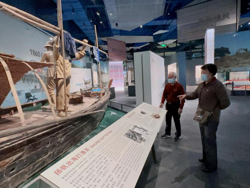 重温入党誓词结束后,在解说员的带领下逐一参观学习了每一个展厅里的历史文化及实物图景,真切感受特区草创时期珠海人敢为人先、筚路蓝缕的特区精神。老党员们参观了“珠海通史”,通过大型环场年表,以编年体方式,呈现出了珠海这座城市发展变迁的历史脉络。通过“海洋纪事”了解了岛民遗风、海战风云、海贸要道等十大重要历史故事,讲述了珠海与海洋唇齿相依,在风浪中搏击中成长的壮丽故事。从容闳毕生奔走复兴中华的行动中切实感受先贤爱国报国的赤子之心。