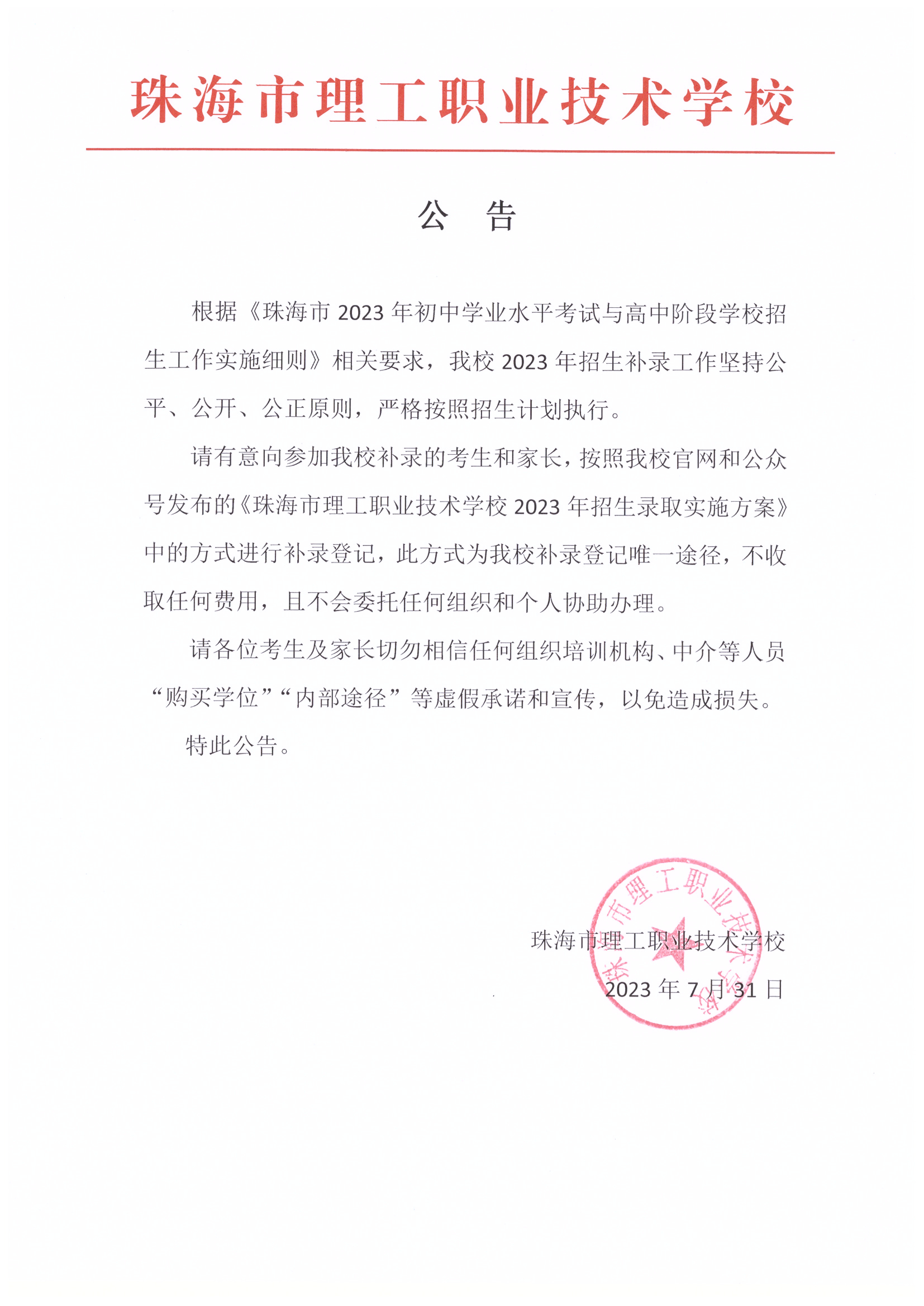 招生录取实施方案链接:珠海市理工职业技术学校2023年招生录取实施方案-珠海市理工职业技术学校 (zhszx.cn)