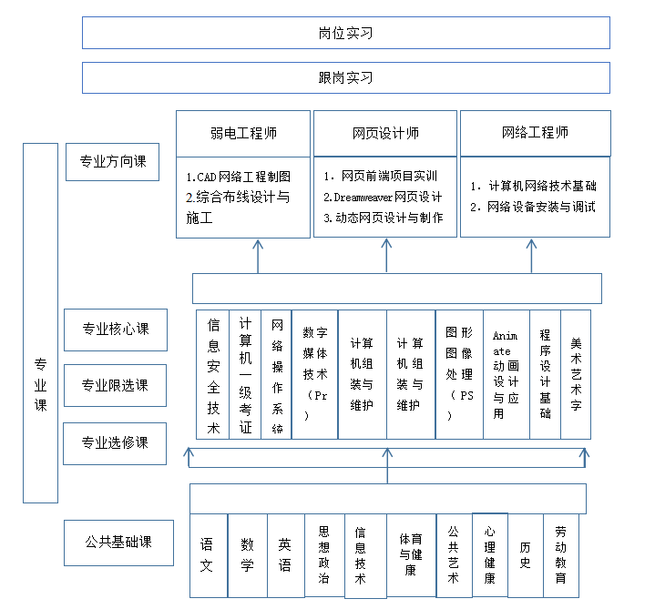 计算机网络技术710202 | 计算机类 | 网络工程师 弱电工程师 网页设计师 | 网络设计与施工 网络管理维护 网页设计制作 弱电工程管理 | 计算机网络管理员 网页设计制作员 网络信息安全管理员 |