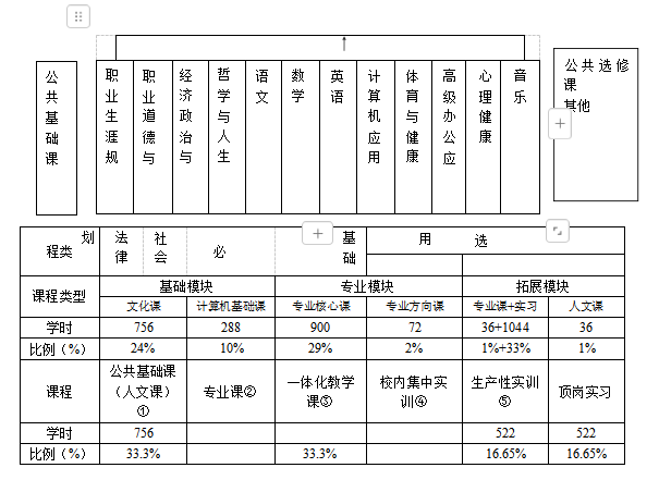公共基础课包括德育课、文化课、体育与健康、公共艺术、理事,以及其他自然科学和人文科学类基础课。