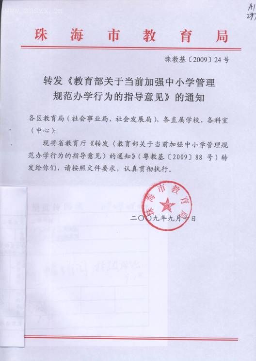 转发《教育部关于当前加强中小学管理规范办学行为的指导意见》的通知