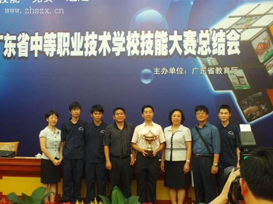 我校积极支持全省中职学校技能大赛、圆满完成广东省代表队集训任务,被授予“2009年广东省中等职业技术学校技能大赛特别贡献奖”。我校陈经纬、祝叶叶、周宇航和方伟东四名同学代表广东省参加全国技能大赛三个项目的比赛,取得了三个一等奖一个二等奖的优异成绩,受到表彰和奖励。陈伟平、张炜和刘春