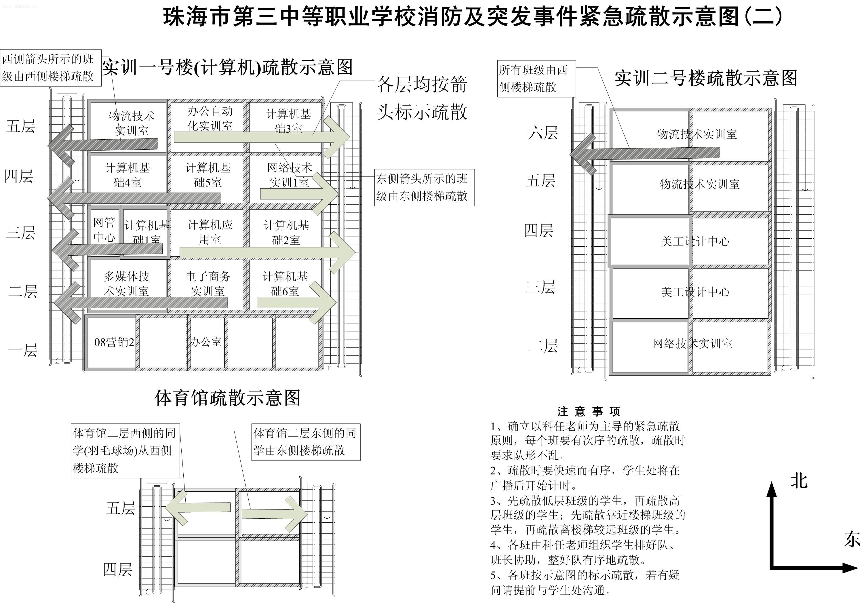 4、各班级疏散责任人:当堂课的科任老师(含代课老师、自习老师、实验管理员等)