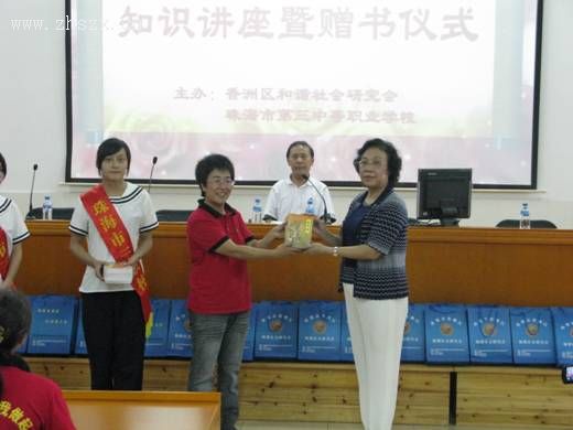 香洲区和谐社会研究会向市三职校全体师生赠书