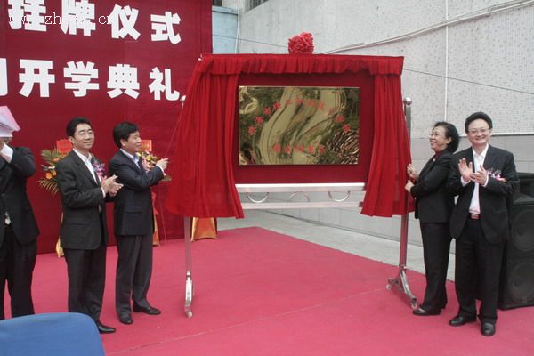 市教育局领导与参加市理工职业技术学校新校名挂牌仪式的来宾、学校领导合影留念