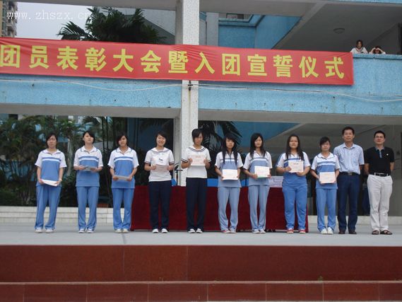 会上,团委陆焱根书记宣读了《珠海理工团委关于表彰2009-2010学年“优秀团员”“优秀团干”的通报》,李堂花等19名团支书被授予“优秀团干”的荣誉称号,成海威等75名团员被授予“优秀团员”荣誉称号。通报表彰结束后,陈文助理和陆焱根书记为获奖团员颁发了荣誉证书,并合影留念。在宣誓仪式上,黄荔恩等81名新团员进行了庄严的入团宣誓。新团员代表司徒盼盼,代表全体新团员作了发言。