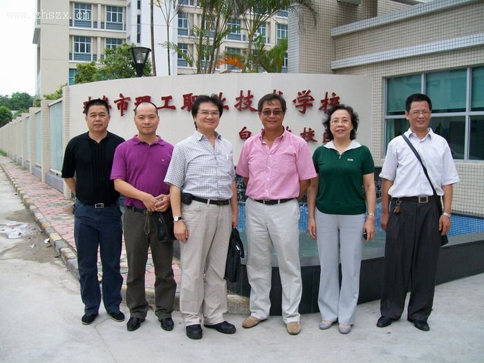 香港显利造船有限公司领导与校领导合影 左2为斗门区宣传部江文宇科长、左4左3分别为显利造船有限公司罗朗莹董事和薛济添策划经理、左5为詹红红校长