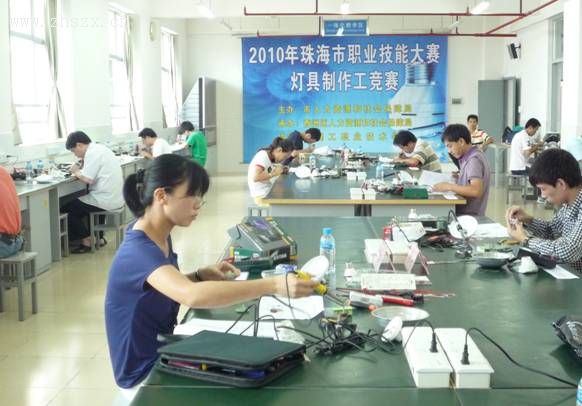 为及时发现、选拔和培养技能人才,充分发挥技能人才的示范效应,引导广大劳动者学习技能,提高技艺,勇于创新,在全社会形成尊重技能、尊重创新、尊重人才的良好氛围,8月17日,由珠海市人力资源和社会保障局主办、香洲区人力资源和社会保障局承办、珠海市理工职业技术学校协办的2010年珠海市职业技能大赛灯具制作工竞赛在市理工学校隆重拉开序幕。来自职业学校和企业界共18名选手参加了紧张的角逐。