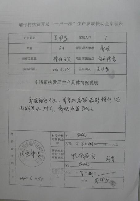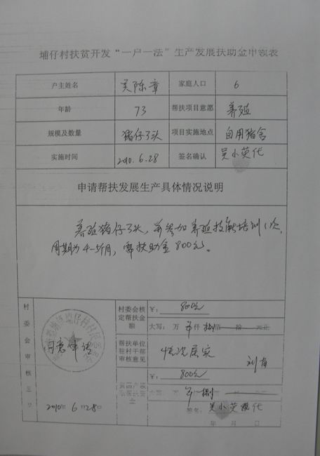 为了落实广东省、珠海市扶贫开发办关于“规划到户、责任到人”的工作部署,在今年6月和9月我校教职工纷纷伸出援助之手,踊跃捐资扶贫帮困,为对口帮扶的普宁市船埔镇贫困户解决了部分种植启动资金。启动资金在市教育局的调控下,已及时发放到位,现将扶贫申领情况通报如下:
