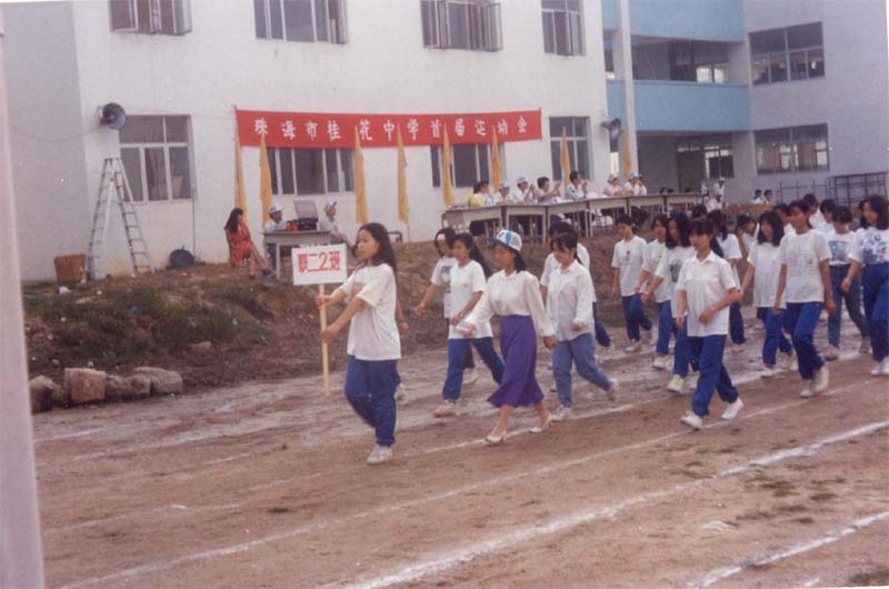1992年8月,建成首期工程教学楼,珠海市桂花中学挂牌。当年招收4个初中班,职业高中2个班、开设电工和电脑文秘两个专业。