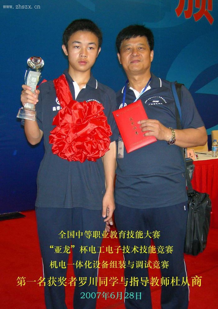 2007年6月,罗川同学获得全国职业院校技能大赛机电一体化项目一等奖第一名。