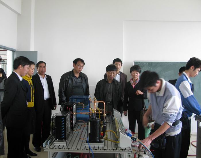 考察组专家在校领导的陪同下参观电气运行与控制专业实训室
