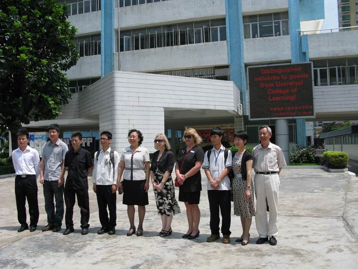 2011年5月27日,新西兰国立理工联合学院院长Julia Pedley(左六)、系主任Jodie Palmer(左七)来我校考察合作办学,与我校詹红红校长(左五)及部分师生合影。