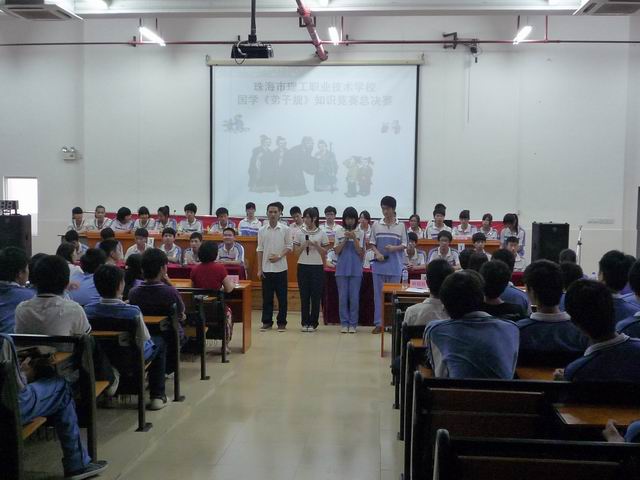 比赛分为故事演讲、背诵经典语句、解释经典语句、理解运用经典语句、知识抢答等环节,竞赛现场选手们精彩的表现获得了观众热烈的掌声。经过激烈的角逐,汽车部获得了团体一等奖,物流部、电气部获得了团体二等奖,网络部、美工部获得了团体三等奖;个人奖项中网络部刘涛睿同学获“最佳演讲之星”,汽车徐久钧同学获“最佳智慧之星”,美工部陈月珠同学、电气部万梓辉同学获个人优胜奖。